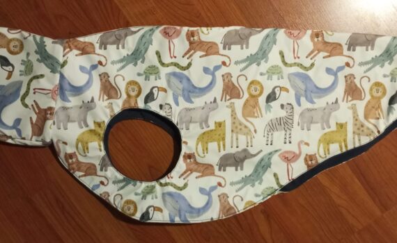 Tejido exterior: impermeable a color. Dibujo de animales de la selva y el mar. Tejido interior: abrigo de color azul, sintético. Cremallera en zona de la espalda para fácil montaje y desmontaje. Precio: 60€ IVA incluido. Cosemos el abrigo para tu lebrel en nuestro Atelier de Valladolid. Todo hecho a […]
